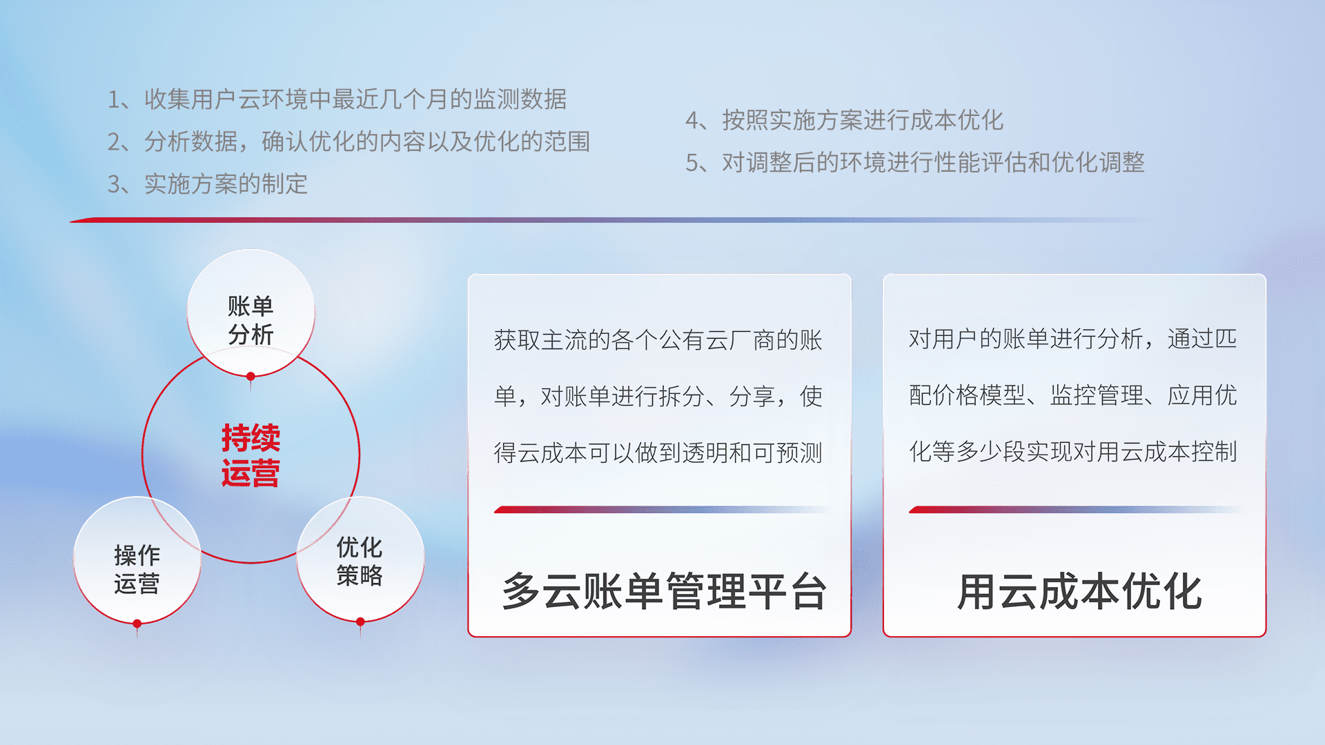 监控业务系统资源开销,,对资源的消耗精确计量,,实现费用的透明化管理,,不断提升资源使用率,,调整资源购买方式,,,,降低资源费用成本,,用云成本可预测、、、用云费用可优化,,,云资源配额有据可依。。。